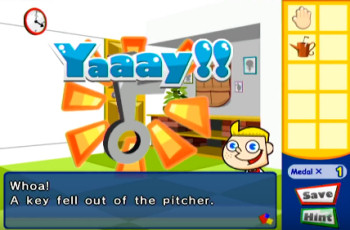 AHA! I GOT IT!![]() Uitgever: Ateam Inc. / 2009 Ontwerper: Ateam Inc. Platform: Nintendo Wii Systeemeisen: --- Nintendo Wii Categorie: Escape-the-room puzzelspel, Milo's kamer, getekende 2D cartoonbeelden, 1ste persoon, point & click. Walkthrough: klik hier voor Patricks Nederlandstalige walkthrough. Beschrijving en review door Patrick: Milo houdt van puzzels. Op zijn verjaardag heeft zijn vader een ideaal cadeau voor hem in petto. Hij sluit hem op in een kamer gevuld met puzzels en aan Milo de taak om zijn hersens te laten kraken en uit deze kamer te ontsnappen. Het verhaal is eigenlijk best bizar. Een kind dat door zijn vader opgesloten wordt in zijn kamer is vaak reden genoeg om de kinderbescherming te bellen. Maar gelukkig vindt Milo het ook niet zo erg. Hij houdt van puzzels dus hij is al snel tevreden. Maar helaas blijft het verhaal daar wel zo'n beetje bij. Het is niet het belangrijkste deel van het spel. Het dient vooral als kapstok voor de puzzels. Toch weet Milo vaak leuke dingen te vertellen over objecten in de kamer. Zo moest ik bijvoorbeeld erg lachen toen Milo zich afvroeg wat hij zou moeten doen wanneer hij naar de WC moest. Dit soort relativerende humor van de makers kan ik zeer waarderen.