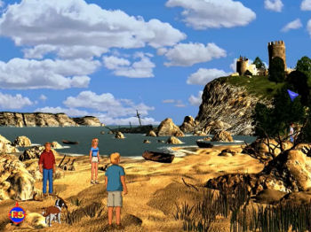 THE FAMOUS FIVE 1: Treasure Island![]() Uitgever: Ravensburger Interactive / 1999 Ontwerper: Enid Blyton, Westka Production Platform: PC. Systeemeisen: --- Windows 95 - Processor: Intel Pentium - 16 MB RAM - Videokaart met 800x600 resolutie - 8x CD-ROM drive. Categorie: Detective, professor, gezonken schip, 2D stripkarakters in getekende realistische achtergrond, naar boek Enid Blyton, 3de persoon, point & click. Beschrijving: Treasure Island is een interactief avontuur geïnspireerd op de populaire Famous Five Books van Enid Blyton. De broers Julian en Dick en hun zus Ann logeren bij hun neef George (Georgina eigenlijk) en haar trouwe hond Timmy, en George's ouders, oom Quentin en tante Fanny, in Kirrin Cottage. Ze zijn echter niet de enigen: een mysterieuze, sluwe professor heeft een van de kamers in het huisje gehuurd. De kinderen worden al snel achterdochtig jegens de professor, wanneer ze ontdekken dat hij geïnteresseerd is in een oud scheepswrak dat vele jaren eerder voor het eiland Kirrin was gezonken. De Famous Five beleven een spannend avontuur met grotten, geheime schuilplaatsen, roeiboten, kasteelruïnes, kerkers en verborgen schatten.