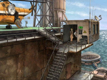 ![]() De grafische beelden zijn indrukwekkend. De achtergronden zijn allemaal handgetekend, gedetailleerd en zeer sfeervol, door het speciale lichtgebruik en de kleuren. Een avond in Oslo, met de rook van fabrieken op de achtergrond, een roestig onderzoeksstation op zee, een stoffige plek in de jungle of een kil metaal met glas hightech kantoor. Dit alles met sfeerbepalende details zoals stofjes in een lichtstraal, druppend water, vogels en beestjes. Ook de overzichten van bovenaf en de tussenscenes die weergegeven worden in dynamische pop-up venstertjes met spreekballonnnen zoals in een stripboek, dragen bij tot levendigheid van het geheel. De karakters die rondlopen zijn zeer goed geanimeerd. Ze lopen en bukken en draaien heel natuurlijk en als je ze een poosje laat stilstaan gaan ze van de ene voet op de andere wippen. Bij het oprapen of bedienen van voorwerpen gaan de armen en handen niet altijd precies in de juiste richting en lippen bewegen niet altijd op het juiste (spreek)moment, maar ze bewegen wél.
