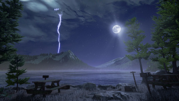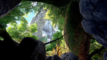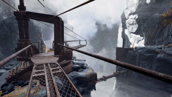 ![]() Beeld Beeldend ziet Obduction er oogstrelend uit, zeer gedetailleerd en natuurgetrouw. Takken van bomen lijken individueel te bewegen in de wind. Exotische vogels vliegen hoog in de lucht. Geheimzinnige grote kevers geven lichtsignalen af en vliegen brommend rond. Waar een waterval in een rivier uitkomt spat het water in nevels op. Zeewierachtige planten golven mee op de stroming van de lucht door een kloof waarin mistslierten als wolken voorbij trekken. Animaties zijn vloeiend in het spel geïntegreerd, zoals bewegende brugdelen, een ronddraaiende bol, raderwerken die zijn te activeren, teleporterende machines die je na activering naar een andere wereld brengen, en voertuigen zoals een trolley waarmee je over spoorlijnen kunt rijden. Je kunt kiezen of je al of niet je eigen schaduw ziet (als man of als vrouw).