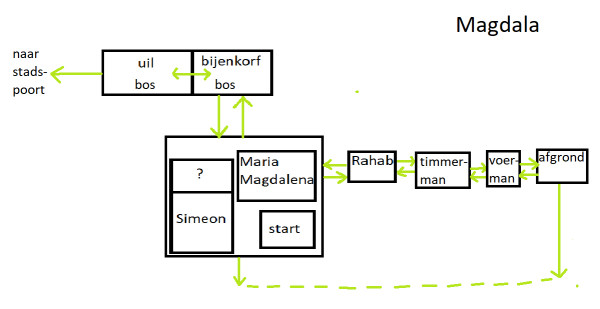Ook zie je daar een tekening van een huis in Magdala: een snelle weg om in Magdala terecht te komen.