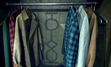 Open de kast met de dubbele deur. Schuif de kleding opzij en je ontdekt nog een patroon [Patroon in kast] [F].