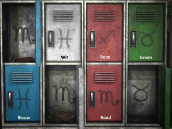 De linker kast bevat nog een beschermpak maar is beveiligd met een puzzelslot.
