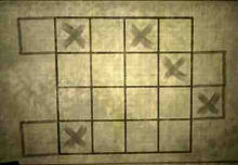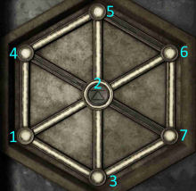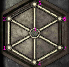 Rechts in het vertrek hangt een plaat aan de wand met weer 12 symbolen.