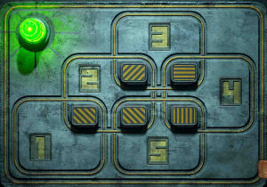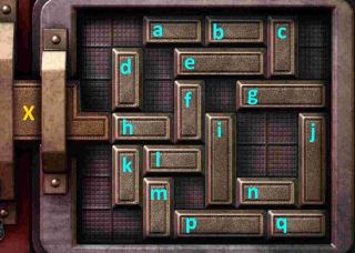 Je kunt de puzzel oplossen door de knop en de gele blokken op een juiste manier te verschuiven. Dat is best een uitdaging.