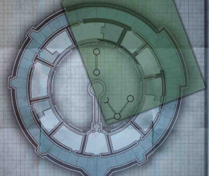 Leg deze ook over de plattegrond van de ronde hal en maak de figuren passend.