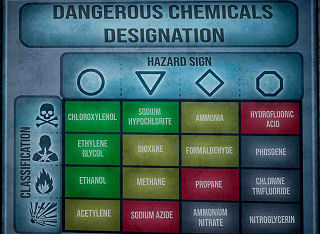 Uit de lijst van gevaarlijke chemicaliën blijkt dat Chloroxylenol tot de groene categorie behoort, in de classificatie giftig staat en met de cirkel voor de gevarenklasse is aangeduid.
