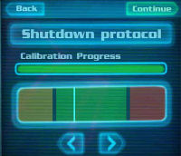 Gebruik de pijltjes onderaan (< en >) om het lijntje in het groene gebied te houden totdat de voortgang van de ijking is voltooid. Het helpt als je steeds kortstondig op de pijltjes drukt.