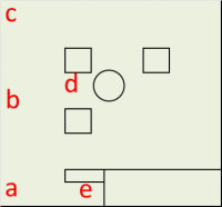 Je komt uit in een hoek (a) van een grote ruimte.![]() Je zou eerst de lantaarns en kaarsen aan kunnen steken om wat licht te krijgen (bij a, b, c, d en e). In hoek (a) zijn vier groene flessen onderling via een leiding verbonden met een centrale pot. Links en rechts van die pot zijn afsluiters in de leiding opgenomen. Loop naar het midden (b) van de linkerwand waar drie kasten met schappen staan met daarop flessen met scheikundige elementen. Op de bovenste rij zijn dat van links naar rechts: Zuurstof, Zilver, Barium, Koolstof, Goud en Broom. Op de middelste rij zijn dat van links naar rechts: Nikkel, Kwik, IJzer, Molybdeen, Chloor en Fluor. Op de onderste rij zijn dat van links naar rechts: Kalium, Natrium, Lithium, Arseen, Vanadium en Titanium. Je hebt nog geen idee wat je hiermee kunt doen. Ga naar de verste hoek (c) waar een brief op een bureau ligt: Gelukgewenst! We waren in staat om vandaag gedurende korte tijd contact te onderhouden met het schepsel. Ik moet zeggen dat Patiënt 13 een sterk meisje is. Ik kon de spanning en angst in haar zien toen we het schepsel te voorschijn brachten. Ik geloof dat we met een groter volume aan reagens in staat zullen zijn om iets machtigers en zelfs duisterders op te roepen dan wat we vandaag hebben bereikt. Onze vorderingen zijn voortreffelijk en het laat aan iedereen zien wat jaren van toewijding teweeg kunnen brengen. -Meester Cornelius Boven het bureau hangt het Periodiek Systeem der Elementen zoals dat er in 1881 uitzag. Draai naar rechts naar de zware kolom en lees daar de brief op de rechter tafel (d): Eerste Alchemist Mortimor, Het schepsel is uit de kooi ontsnapt en is net buiten de deur naar het lab. De Meester van de Alchemie, Cornelius, en Meesteres van de Bibliotheek, Gehenna, hebben de sleutels naar de opslagruimte al meegenomen en zijn gevlucht terwijl ik dit aan u schrijf. Ik ga de riolering trotseren om te proberen te ontsnappen. Diepste verontschuldigingen. Ik vergrendel het rooster achter me. Ik moet u waarschuwen dat zij niet te vertrouwen is, het zit in haar. -Beginnend Alchemist Geor.... Uit het feit dat de schrijver zijn naam niet meer volledig kon schrijven en er bloedvlekken op de vloer zitten valt niet veel goeds af te leiden! Er staat ook een lege fles (vial) op tafel. Neem die mee. In de inventaris zie je dat er een cijfer 4 op staat. Begeef je van hier naar de put en daar vandaan naar het bureau (e) achter de kolom. Lees de waarschuwing van Cornelius: Dit is een waarschuwing voor alle alchemisten! Het rooster naar de riolering is zo gecorrodeerd dat het op het punt staat door te roesten. De volgende persoon die de corrosieve oproepverbinding in de riolering giet zal ondervinden dat hij er zelf in zwemt! Ben ik duidelijk genoeg? -Meester van de Alchemie Abe Cornelius In de rechter lade van het bureau vind je een afgescheurde kaart met allerlei notities erop. Bekijk die in de inventaris en merk het recept op waarin achtereenvolgens 7, nog eens 7 en tenslotte 3 delen van ingrediënten nodig zijn. De linker lade blijkt te zijn afgesloten met behulp van een cijferslot. Geef van links naar rechts de cijfers 7, 7 en 3 in en de lade gaat open. Je vindt er een vreemd gevormd stuk metaal in. Neem dit mee naar achteren en leg dit over het Periodiek Systeem heen. Door de gaten in het metaal lees je de namen van de elementen: Koolstof (Carbon), Zuurstof (Oxygen), Chloor (Chlorine) en Arseen (Arsenic). Breng bij (b) de lege fles in aanraking met de fles waar Koolstof (Carbon) in zit. Dan heb je in de inventaris een fles met Koolstof en bevat de lege fles het cijfer 3 (nog drie te gaan). Herhaal deze actie met de drie andere elementen. De lege fles is daarna uit de inventaris verdwenen. Breng bij (a) de inhoud van de flessen uit de inventaris over in de vier flessen van de opstelling. Het maakt daarbij niet uit welk element je in welke fles overbrengt. Draai de beide afsluiters open en je hoort een geborrel, waarna een kaartje laat weten dat er een zeer corrosieve stof is ontstaan. In de inventaris zit nu een fles met dat corrosieve reagens. Loop naar de put en giet de inhoud van de fles erin. Wat het middel precies doet is niet helemaal duidelijk, maar je ziet dampen oprijzen en je kunt even later via de put ontsnappen. Rioolstelsel