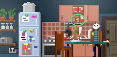 Bekijk het prikbord. Waffles vindt het vreemd dat er een boodschappenlijstje (grocery list) hangt. Het lijstje komt in de inventaris te staan.