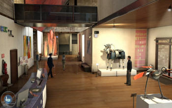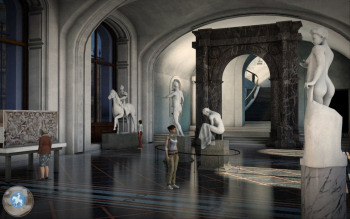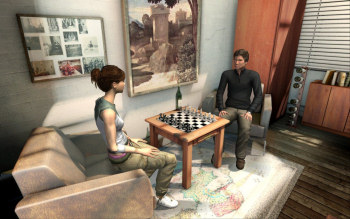 ![]() Grafisch ziet het hele spel er fantantisch uit. De omgevingen zijn fotografisch mooi en gedetailleerd. Er is een expositie in het museum en de reclamebanners zie je ook terug in de straten van het stadscentrum. Of dat nu op een Zuidzee eiland is, in London of Parijs, alles ziet er 'echt' uit. De karakters lopen en bewegen heel natuurlijk. Ze knipperen zelfs met hun ogen, terwijl ze met iemand praten. Ook de schaduwen tijdens het lopen kloppen helemaal. Het is dan ook heel jammer en onbegrijpelijk dat Bernhard op een gegeven ogenblik ergens gaat zitten, waar geen stoel is en Cathryn dwars door Mike heenloopt. Ook is het merkwaardig dat in het verbouwde en volledig ingerichte pakhuis waar de groep woont en waar elk van de groepsleden een eigen kamer heeft, nergens een bed te bekennen is! Over het feit dat iedereen 15 dagen lang dezelfde kleding aanheeft, praten we dan maar niet.