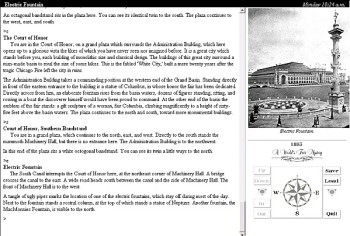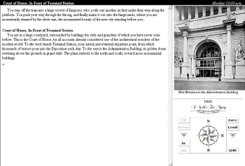 1893: A WORLD'S FAIR MYSTERY![]() Uitgever: The Illuminated Lantern / 2002 Ontwerper: Peter Nepstad, The Illuminated Lantern Platform: PC, Mac. Systeemeisen: --- Windows 95/98/ME/2000/XP --- MAC OS 7 tot 9 of MAC OS X in Classic modus. Categorie: Tekstadventure, detective, Wereldtentoonstelling van 1893 Chicago, zwartwit foto's, 3de persoon, point & click. Beschrijving en review: In 1893 wordt er in Chicago een wereldtentoonstelling georganiseerd, ter viering van het feit dat Columbus 400 jaar eerder in Amerika arriveerde. Jij krijgt een telegram van je oude partner met het verzoek te helpen bij het oplossen van een mysterie. Er zijn namelijk diamanten gestolen van de expositie. Dit is je kans om die beroemde expositie te bezoeken! Maar voor je het beseft, rol je van een diefstal in een ontvoering en daarna zelfs in een moordzaak. Dit spel voor lezers moet het niet hebben van geweldige grafische beelden. Je krijgt alleen originele archieffoto's uit die tijd te zien. Verder bestaat het hele spel uit interactieve tekst. Dat wil dus zeggen dat je bijvoorbeeld "look" intypt en dat je vervolgens tekst krijgt waarin beschreven wordt wat je ziet. Het is dan ook noodzakelijk om papier en potlood bij je toetsenbord te houden om aantekeningen te maken. Want stel je voor je legt ergens een sleutel neer (drop key) en je weet later niet meer waar! Dit bijzonder lange spel (30 uur speeltijd), draait geheel om het verhaal en de karakters. Er zijn honderden plekken die je kunt bezoeken en evenzovele voorwerpen die je kunt bekijken, van een replica van Columbus'schip, tot aan het voedsel dat je verplicht ben zo nu en dan in een restaurant te nuttigen. Je bent als het ware zelf op het enorme terrein waar de expositie gehouden werd. Gelukkig krijg je wel een plattegrond, al is dat geen garantie voor niet-verdwalen. De puzzels bestaan uit het oplossen van cryoptische omschrijvingen die je helpen bij je zoektocht, het vinden en gebruiken van voorwerpen zoals sleutels of een bijl om deuren open te maken. ![]() ![]() Eerst uitproberen? Download de demo, op Cnet. Grotere plaatjes bekijken? Ga naar de screenshots. |