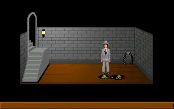 5 DAYS A STRANGER![]() Uitgever: Fully Ramblomatic / 2003 Ontwerper: Ben YahtzeeCroshaw Platform: PC. Systeemeisen: --- Windows 98/ME/2000/XP - Processor: Pentium 600 MHZ - 128RAM - Videokaart met 16 bit kleur - Geluidskaart. Categorie: Horror, moordenaar, verlaten landhuis, tijdpuzzel, 2D getekende beelden, 3de persoon, point & click. Walkthrough: klik hier voor Marjo's Nederlandstalige walkthrough. Beschrijving en review: Je speelt als meester-inbreker Trilby en je enige wapens zijn een inbrekerssetje en een werphaak die eruit ziet als een paraplu. Trilby is een echte gentleman en dat zie je ook aan zijn kleding: een gestreept pak met een bijpassende hoed, een zogenaamde Trilby-hoed. Op een dag besluit hij het DeFoe huis leeg te roven. De eigenaar is onlangs overleden. Maar eenmaal binnen, sluiten alle ramen en deuren. Trilby en 4 andere aanwezigen worden door het huis gevangen gehouden. En met een goede reden. Al snel valt de eerste dode. Maar wie is de dader?