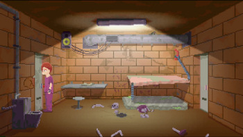 7 METERS AWAY: Oscar and the Cell of the Soul![]() Uitgever: Dlou Saiyan / 2024 Ontwerper: Dlou Saiyan Platform: PC. Systeemeisen: --- Windows XP SP1 of hoger - Processor: x86-compatible processor, 500 MHz of sneller - Grafische kaart compatible met DirectX 9.0c - 659 MB beschikbare opslagruimte. Categorie: Ontsnappen, mysterie, dystopisch, 2D retro realistisch pixelbeeld, 3de persoon, point & click. Walkthrough: klik hier voor Marjo's Nederlandstalige walkthrough. Beschrijving: Je neemt de rol aan van Oscar, een jonge pakketbezorger. Na zijn laatste bezorging van de dag, hangt Oscar op de bank en speelt zijn favoriete spelletje op TV. Maar dan ineens wordt hij wakker in een cel. Is hij in slaap gevallen op de bank? Droomt hij? Door een speaker hoort hij raadselachtige welkomstboodschap. Op de grond ligt een lijk en de twee deuren zijn gesloten. Een vergeten tijdschrift en zijn dode celgenoot vormen de enige aanwijzingen die hem naar het meest intrigerende mysterie van zijn leven leiden: hoe is hij daar terechtgekomen? Maar vooral hoe komt hij hieruit? Over de goed getekende, duidelijke pixelbeelden, de vloeiende, vaak grappige animaties, de eenvoudige spelbediening en de logisch geïntegreerde puzzels niets dan lof. Het is allemaal prima in orde en verzorgd. De muziek is aangenaam rustig getingel op de achtergrond. De spelfouten in de Engelse ondertiteling hadden wel eruit gehaald mogen worden. Er valt verder niet zo veel te vertellen over dit korte spel, dat binnen een uur uit te spelen is. Het achtergrondverhaal is bevreemdend. Sporen in de lucht die ervoor zorgen dat de perceptie van de tijdelijke ruimte verandert? Het wordt verder niet uitgewerkt en het enige wat we zien is dat een normale jongen blijkbaar in slaap valt en in zijn droom uit een cel probeert te ontsnappen. Het lijkt erop dat de spelmaker na een poos zijn interesse in het het spel verloor en het daarom maar onaf op de markt zette. Ook het feit dat er veel voorwerpen op te rapen zijn, waar niets mee gedaan wordt, wijst in die richting. Er is aan het einde een vage belofte voor een tweede deel mits er veel positieve reviews geplaatst worden.