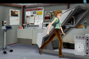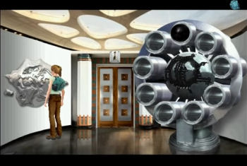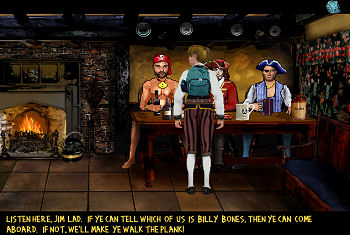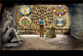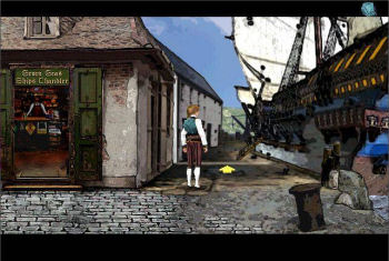 ![]() Spelbediening Aan het begin van het spel kun je kiezen uit New game, Load game en Quit Game. In het spel zelf zijn bovenaan het scherm die opties ook te vinden. Daarnaast kun je saven en je keuze stop zetten (cancel). Rechtsboven zie je de inventaris in de vorm van een rugzakje. Als je veel spullen bij je hebt, kun je op een ritsje klikken, zodat je op een tweede scherm de rest van de inventaris ziet. Het spel is volledig met de muis te doen. De muiscursor is dynamisch en verandert automatisch in een oog, als je iets kunt bekijken, in een handje als er iets is op te pakken, te openen of te manipuleren of in een mondje als je met iemand kunt spreken. Als je een spel opslaat kun je een leeg hokje aanklikken waarin dan een plaatje verschijnt van het opgeslagen moment; bij loaden klik je dan op het plaatje om het spel vanaf dat moment te vervolgen.