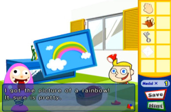 ![]() De muziek is even simpel als de graphics, maar het klinkt erg lekker. Het is eenvoudig maar vrolijk, aanstekelijk en perfect geschikt voor dit spel. Toch had er wel meer ingezeten. Dezelfde muziek wordt in beide kamers gebruikt, maar bij de eindes hoor je andere, ook erg lekkere muziek. Meer variatie was geen overbodige luxe geweest, maar het klinkt gewoon allemaal erg goed en het maakt de eindes extra speciaal. Stemgeluiden zijn niet aanwezig, maar dat is ook niet benodigd. In de intro worden de stemmen vervangen door rare bliepjes die erg irritant zijn en heel traag. Gelukkig kan je het met een druk op de A-knop skippen en zijn de bliepjes in het spel zelf niet aanwezig. De geluidseffecten zijn verder prima. Vooral het regengeluid vond ik erg leuk. Het is alleen vreemd en jammer dat deze stopt zodra je de dialoogbox wegklikt terwijl het raam nog steeds openstaat.