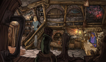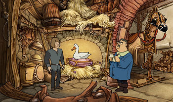 ![]() De puzzels in het spel zijn voornamelijk gebaseerd op het zoeken en gebruiken van voorwerpen. Ze zijn niet al te moeilijk, en middels de hints in de dialogen wel duidelijk, al is het een enkele keer wel een kwestie van gewoon maar alles op alles proberen. Er zitten enkele minigames in het spel, zoals paardenkwartet, haantjesroulette en zwaardvechten die niet moeilijk, maar ook niet bijzonder leuk zijn. Je kunt ze niet overslaan, maar wel vaker vanuit het menu spelen, nadat je ze eenmaal gedaan hebt. In het spel kom je ook andere sprookjesfiguren tegen zoals Hans en Grietje en Robin Hood, die je ook zult moeten helpen voordat je verder kunt met je zoektocht naar Herzelinde. Je treft karakters uit de spellen "Edna and Harvey" en uit "The Whispered World". Voor spelers die deze adventures niet kennen, maakt het verder niet uit en voor de anderen is het een leuke sport om ze als zodanig te herkennen.