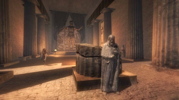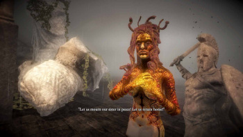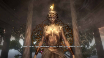 ![]() Hoewel je niemand tegenkomt is het toch geen eenzaam spel. Dat komt door de interactie met goden(beelden) waar je mee communiceert, diverse (mythologische) beesten die je tegenkomt en de menselijke figuren die weliswaar zijn versteend, maar die steeds door de muze worden beschreven. De muze zelf, hoewel onzichtbaar, voelt aan als een voortdurend nabije metgezellin. Niet alleen ontmoet je goden in de vorm van beelden in tempels, maar kom je ook allerlei wezens tegen die bekend zijn van de beroemde verhalen uit de klassieke literatuur, zoals Sirenen (vrouwen met onweerstaanbaar verlokkend gezang), Gorgonen (slangachtige zussen die je in steen kunnen veranderen) en Harpijen (woeste vogels met een mensenhoofd). Ook de Hydra, Minotaurus, Griffioen, Cyclopen en het gevleugelde paard Pegasus kruisen je pad. Je leert gaandeweg iets over de Griekse mythologie. Voor wie niet thuis is in deze materie is het spel een interessante kennismaking. Voor anderen is het misschien een aanleiding om de prachtige goden- en heldenverhalen er nog eens op na te lezen.
