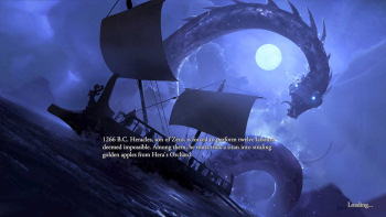 ![]() Er zijn nogal wat laadmomenten. Om het niet saai te maken, krijg je telkens een afbeelding te zien met de mythologische geschiedenis van Jason en de Argonauten en later van Argonus zelf en zijn makkers. Als je tussen twee vuurkolommen doorloopt en de eerste van een reeks afbeeldingen ziet, kun je desgewenst heen en weer blijven lopen zodat je de opeenvolging van alle afleveringen te zien krijgt. Zogenaamd begint die 'geschiedenis' in 1268 vóór onze jaartelling en eindigt in 1242. Het spel kent ook wel enkele minpuntjes: Zo is niet altijd even duidelijk wat de volgende stap is, vooral naarmate het verhaal vordert. Je legt behoorlijke afstanden af op zoek naar gemiste voorwerpen of om terug te keren naar plaatsen waar je al eerder bent geweest en een nieuwe taak moet uitvoeren. De spelontwerpers zijn je daarbij tegemoet gekomen doordat je met behulp van een gevonden voorwerp van obsidiaan de mogelijkheid hebt om snel van de ene plek naar de andere te reizen. Het spel lijkt abrupt en nogal onbevredigend te zijn afgelopen als de aftiteling begint. Wacht dan geduldig want de spelmakers hebben een nieuw en voldoening schenkend einde gemaakt na die aftiteling (Director's cut ending). En dan zijn er zelfs twee aflopen!