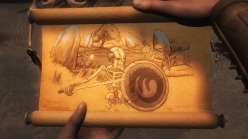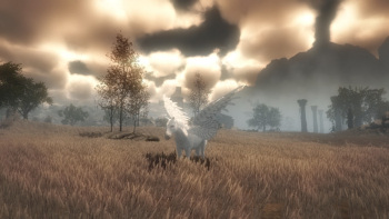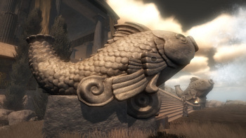 ![]() Beeld De wereld van Argonus is gedetailleerd en prachtig weergegeven. Er is gebruik gemaakt van een sepia kleurzweem wat een speciale sfeer teweegbrengt. Meestal is het mooi weer maar in een deel van het spel regent het, wat voor een leuke afwisseling zorgt. De voorbij drijvende wolken zijn indrukwekkend. Er beweegt van alles, trillende blaadjes van bomen en struikgewas, wuivende halmen van grassen, water van de zee en van fonteinen. Er vliegen vogels door de lucht en op de grond scharrelen schapen en kippen rond. Mooi zijn de schaduwen van vliegende vogels en Harpijen die over de grond scheren. Ook je eigen schaduw is regelmatig zichtbaar. Interessant zijn ook de visioenen die Argonus krijgt, waarbij hij waarneemt wat er vroeger is voorgevallen, en die in heldere gele kleuren zijn weergegeven. De onalledaagse figuren zoals goden en mythische beesten zijn schitterend en geloofwaardig vormgegeven. Er zijn allerlei animaties als de godenbeelden tot leven komen en Argonus toespreken. Het gevleugelde paard Pegasus suist door de lucht. Harpijen raken slaags met skeletachtige krijgers of met de griffioen. De slangachtige Gorgonen glijden voorbij. Het is zeker geen statisch spel. Vernieuwend is dat voorwerpen die je kunt oprapen ook echt door Argonus worden opgepakt (je ziet 'jouw' hand) waarna ze in je inventaris verdwijnen. Die inventaris is steeds in te zien en de voorwerpen erin kun je aanklikken voor nadere uitleg.
