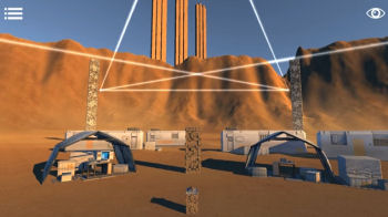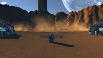 ![]() Grafisch ziet het spel niet slecht uit. De achtergronden zijn helder en realistisch gedetailleerd waar het moet. De wanden van het ruimteschip zijn glad en strak en er liggen uiteraard geen tafelkleedjes of snuisterijen rond. Wel zijn er ramen met uitzicht op de ruimte en aan een andere wand ruimtekaarten. Als je langs een glazen ruit loopt, beweegt de ruimte erachter realistisch mee. Ook de vrachtruimte waar het vreemde voorwerp staat is logisch en overtuigend efficiënt ingericht met consoles en plafondkranen. De woestijnachtige omgeving waar je later terechtkomt heeft zijn eigen charme, met zand, rotsen en een tentenkamp dat niet zou misstaan bij een opgraving in Egypte. Ook de animaties zijn realistisch, voor zover dat kan in een science fiction. Je ziet mistflarden, zandverstuivingen en electrische effecten, knipperende lampjes en schuivende laatjes naast de vloeiende bewegingen van het verdwijnen in een portal. Alle mechanische puzzels reageren eveneens vloeiend op je sleep en klikbewegingen.