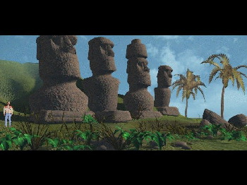 ARK OF TIME![]() Uitgever: Interplay / 1997 Ontwerper: Trecision Platform: PC MS-DOS, Windows 95/98, Playstation Systeemeisen: --- DOS 5.0 of hoger - DOS modus onder Windows 95 en 98 - Processor: 486DX2/66 (Pentium aanbevolen) - 8 MB RAM (12 MB aanbevolen) - Videokaart: VESA-compatible SVGA kaart - Geluidskaart: Creative Labs SoundBlaster - 4x CD-ROM drive - 51 MB opslagruimte. Categorie: Science fiction, mysterie, zoektocht, Stonehenge, Paaseiland, Atlantis, geïllustreerd realisme, 3de persoon, point & click. Beschrijving: In de zomer van 1997 duikt een expeditie van vier onderzoekers in de diepte van de Atlantische Oceaan, op zoek naar sporen van de Mythische stad Atlantis. Het zijn de archeoloog Professor Caldwell, wetenschapster Helen, de sponsor van de expeditie Blowe en zijn neef Simon. Als er plotseling niets meer van de onderzoekers gehoord wordt, krijgt sportjournalist Richard de opdracht hen op te sporen. Richard wil geen betaalde trip naar het Caribisch gebied. Richard wil liever thuis in London blijven om verslag te doen van voetbalwedstrijden. Maar hij heeft pech. Zijn baas staat erop dat hij gaat en Richard krijgt te maken met zeer veel problemen als hij de halve wereld rondreist en plaatsen zoals Stonehenge, Paaseiland en uiteindelijk Atlantis bezoekt.