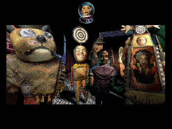 BAD DAY ON THE MIDWAY (The Residents')![]() Uitgever: Inscape / 1995 Ontwerper: The Cryptic Corporation Platform: PC, Mac. Systeemeisen: --- Windows 3.1 of hoger, 33MZ of sneller - 8MB RAM - 2x CD-ROM drive (300 k/sec) - videokaart 256 kleuren, resolutie 640x480 - 16 bit geluidskaart. --- MAC systemen 7.1 of hoger - 68030 33MHz of sneller - 2x CD-ROM (300 k/sec) - videokaart 256 kleuren, resolutie 640x480 - 8 MB RAM. Categorie: Mysterie, pretpark, humor, surrealistisch, muziek en beeld van The Residents, 1ste persoon, point & click. Beschrijving: In deze multimedia extravaganza, speel je de rol van Timmy, een kleine jongen die een bezoek brengt aan een vervallen en nogal akelig pretpark. Je bezoekt attracties zoals Kill-A-Commie, The Sperm Whale Gives Birth to an Electric Eel, and Lottie the Human Log. Elk verhaallijn is zichtbaar geïllustreerd door een andere striptekenaar en al snel wordt duidelijk dat ook elk personage een eigen agenda volgt. Er zijn o.a. verborgen schatten, moorden en een IRS Mandie verschijnt om belastingfraude te onderzoeken. De spelvolgorde is gebaseerd op de ontdekkingen gemaakt door de verschillende karakters. Als je gedood wordt - en dat kan gebeuren - is het goed mogelijk dat het spel de volgende keer anders is, aangezien de personages in een andere volgorde verschijnen. Om het complete verhaal op een rijtje te krijgen, kan het nodig zijn het spel meerdere keren te doorlopen. Tijdens het spelen kun je wisselen van, en kiezen uit, tien zeer aparte speelbare karakters, alhoewel enkele verhaallijnen aleen gespeeld kunnen worden door Timmy. Helaas is er geen ondertiteling, wat het soms moelijk maakt gesproken verhalen te begrijpen. Het spel heeft geen save-optie. ![]() ![]() Grotere plaatjes bekijken? Ga naar de screenshots. |