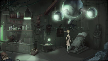 ![]() Ook grafisch doet het spel niet meteen aan een standaard horror denken. Geen donkere kamers met vage figuren en rode oogjes, maar een losjes getekende omgeving in zachte tinten. Ruim voldoende verlicht om te kunnen genieten van de details. De achtergronden zijn statisch, op een enkele sneeuwblok na in de buitenscène. Het speelbare karakter loopt/zweeft door de achtergronden met een passende vreemde knik in haar taille. Je ziet het mondje bewegen als ze praat, maar je ziet haar nooit iets vast pakken of bukken. Voorwerpen uit je inventaris sleep je op de plek waar je ze wilt gebruiken en het karwei is meteen geklaard. Het helpt wel mee de vreemde dood-of-levend sfeer overeind te houden. Het spel is voorzien van gesproken teksten, iets wat toch wel bijzonder is in een indie game. Het stemacteren is van goede kwaliteit, het stemmetje past bij het karakter en klinkt neutraal ongevoelig. Gelukkig geen geschreeuw, gezucht, of gelach. Jammer is wel, dat de achtergrondgeluiden de stem soms iets overstemmen. De ondertiteling komt dan goed van pas.