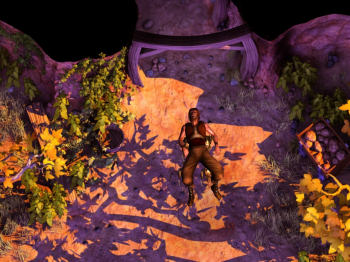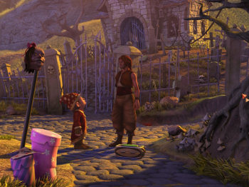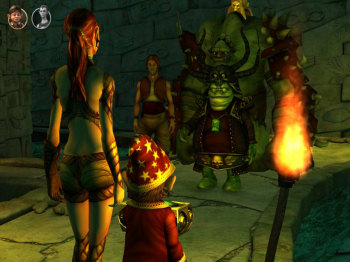 ![]() Met een knipoog en ingehouden humor worden in beelden en dialogen de cliché werelden uit avonturenfilms en RPG spellen, zoals Lord of the Rings, Harry Potter, World of Warcraft , Indiana Jones, Mission Impossible en nog veel meer, aangehaald. Wat te denken van een magiër die uit zijn realiteit probeert te ontsnappen door online World of Bureaucracy te spelen, gevolgd door de zeer herkenbare reacties als de server crasht. Of een kroegbaas die stellig beweert dat niemand ooit een magische ring en het redden van de wereld toevertrouwt aan een onbelangrijke kabouter. Of een elf die een overbekend deuntje neuriet als ze aan een zweep slingert. Allemaal kleine dingen die je met een glimlach van herkenning verder laten spelen, zonder dat ze te zeer afleiden van je missie en het verhaal. De vier hoofdrolspelers in het verhaal hebben een overtuigend eigen karakter. De vriendelijke, ietwat naïeve Wilbur vormt een leuk contrast met de levenswijze, ietwat arrogante elf. De mens Nathan heeft dankzij zijn botte, voortdenderende karakter maar één vriend, een harig paars beestje.