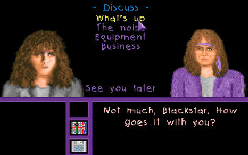 BLACKSTAR: Agent of Justice![]() Uitgever: Worwyk Software / 1995 Ontwerper: Thomas Vitacco, Worwyk Software Platform: DOS. Systeemeisen: --- DOS 3.0/3.1 - Intel 80286 processor - 640 KB RAM - VGA videokaart - Soundblaster geluidskaart of PC-speakers. Categorie: Science fiction, thriller, verdwijningen, moord, 2D en 2.5D getekend beeld, 1ste persoon, point & click. Beschrijving: Je speelt de rol van Blackstar, een Native American, oftewel een indiaan. Je bent deels een detective, deels een stoer type, deels een drugsdealer en zelfs zo nu en dan een klusjesman. Onder dat ruige uiterlijk schuilt echter een goed hart. Er gaat geruchten in de stad dat prostituees zomaar verdwijnen, maar je besteedt er nog niet veel aandacht aan. Pas als je collega-agent Cam iets voor je achterlaat, komt dit vreemde mysterie dichterbij en duik je in het nachtleven van deze bijzondere gemeenschap. ![]() ![]() Meteen spelen? Download de twee delen van het sharewarespel, op Abandonia. Grotere plaatjes bekijken? Ga naar de screenshots. |