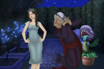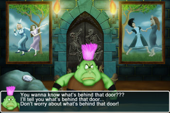 CASTLE ABRA![]() Uitgever: CastleAbra Studio, Facepuncher Worldwide / 2014 Ontwerper: Ricardo Nieto, CastleAbra Studio Platform: PC Systeemeisen: --- Windows XP/Vista/7/8 - Processor 1.6Ghz of hoger - 1GB RAM - 300MB HD ruimte - DirectX 9.0c compatible Videokaart - DirectX 9.0c compatible geluidskaart - Windows Media Player. Categorie: Fantasie, humor, tovenaar, prinses redden, getekende beelden, slideshow, 1ste persoon, point & click. Walkthrough: klik hier voor Marjo's Nederlandstalige walkthrough. Beschrijving en review: De oude, eenzame tovenaar Wizardo is hopeloos verliefd op de mooie, jonge prinses Myrna Loo. Zij ziet hem echter meer als een vriend. Als Wizardo haar dapper zijn liefde verklaard, wordt hij dan ook vriendelijk afgewezen. Wizardo kan zich niet hierbij neerleggen en zet de prinses gevangen in zijn kasteel. Het is aan jou om in het kasteel te infiltreren als tovenaarsleerling en achter de rug van de tovenaar om, de prinses te redden. Dit is het hele verhaal en het wordt niet verder uitgediept. Je ontmoet nog even de tovenaar als hij wat depressief is of gedichten schrijft, maar meer inzicht krijg je niet in zijn karakter. Alle andere vreemde dieren en wezens waarmee je contact krijgt, hebben een onduidelijke functie in het kasteel. Ze zijn aanwezig en ze leveren sleutels als je ze uitschakelt, maar wat ze daar verder doen en waarom is blijkbaar niet van belang. ![]() ![]() De puzzels bestaan dan ook voornamelijk uit het vinden van een sleutel waarmee je een deur kunt openen. Zodat je in een kamer komt, waar weer vreemde wezens zijn, die misschien een sleutel hebben voor een andere deur. Meestal schakel je de vreemde dieren uit met voorwerpen die je her en der kunt vinden. Het is best wel leuk om te doen en niet al te moeilijk. De wezens geven vaak aanwijzingen door hun uiterlijk of in hun commentaar. Zo heeft een paars nijlpaard duidelijk een paarse vrucht nodig en vraagt een stier als het ware om een rode doek. Om die rode doek te krijgen, zul je dan wel eerst de deur moeten openen, waarachter hij hangt en een schaar moeten zoeken. Zo volgt de ene puzzel vanzelf op de andere. ![]() ![]() De spelbediening hierbij is effectief en zeer eenvoudig. Met een grote handcursor kun je overal op klikken om commentaar te krijgen of inderactief te zijn. Voorwerpen gaan naar een inventaris, die opent met rechtsklikken. Het wijst zich eigenlijk allemaal vanzelf. Er zijn heel veel kamers om te bezoeken en allemaal hebben ze hun eigen, herkenbare sfeer. Een frisse spiegelkamer, een helderschone stal, een tuin in het maanlicht. Zelfs het kasteel, dat magisch en somber moet lijken, is op de donkere plekken in prettig paarse tinten gehouden. De flamboyante Valentino woont in een bijpassende vrolijk gekleurde omgeving en de vreemde wezens zijn eveneens vreemd, maar vrolijk van uiterlijk. De gedetailleerde achtergronden zijn dan ook aangenaam om naar te kijken. ![]() ![]() De beelden zijn allemaal statisch. Zo nu en dan is er een karakter dat heen en weer schuift of minimaal beweegt of is er kort geanimeerd tussenfilmpje, maar veel beweging is er verder niet. Je mist het ook eigenlijk niet en het is niet noodzakelijk voor de voortgang. De meeste karakters die je ontmoet passen wonderwel in de stijl van de achtergronden. Ook de tovenaar blijft een grappig cartoonfiguur, of hij nou depressief zit te lezen of helemaal enthousiast opveert als hij de prinses ziet. Eigenlijk is de prinses de enige die qua stijl een beetje uit de toon valt. Ze ziet er te 'normaal' uit in vergelijking met al die andere figuren. ![]() ![]() De electronische muziek van Rodney Marfil is speciaal voor dit spel gemaakt. Er is een basisthema, dat vaak herhaald wordt en in de meeste locaties hoor je een speciale medodie die bij de omgeving past of aangeeft dat er gevaar dreigt. De herhalingen kunnen gaan vervelen als je ergens te lang blijft, maar gezien de eenvoud van de puzzels, zal dat niet vaak gebeuren. Er zijn geen gesproken stemmen in het spel. Alle dialogen staan in grote, duidelijk leesbare letters in een kader. Ze geven aanwijzingen, zoals een plant die zegt dat hij naar buiten wil. Soms is het stoere praat, zoals van de kabouter die zich achter zijn grote broer verschuilt. Een Mexicaanse stier zegt vaak "Yo en Chico". Door zijn eenvoudige puzzels en de cartoondieren lijkt het spel gemaakt voor kinderen. De dialogen passen echter niet altijd bij dat idee. Ze zijn soms cynisch, gekleurd en ronduit onvriendelijk. ![]() ![]() Al met al is CastleAbra een vrolijk getekend spel met veel locaties om te bezoeken. Er zit nauwelijks verhaal in, maar dat hoeft ook niet. De enige bedoeling is dat je via het oplossen van een grote hoeveelheid puzzels allerlei deuren opent om een prinses te redden. Een aardige tijdsbesteding voor een regenachtig weekend. Grotere plaatjes bekijken? Ga naar de screenshots. |