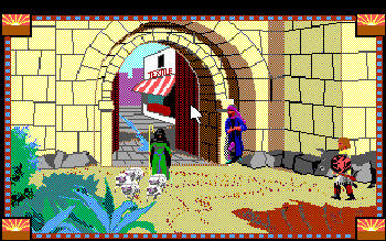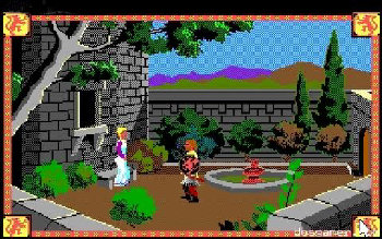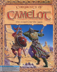 CONQUESTS OF CAMELOT: The Search for the Grail![]() Uitgever: Sierra On-Line / 1990 Ontwerper: Ken Williams, Christy Marx, Sierra On-Line Platform: PC. Systeemeisen: --- MD-DOS 2.0 - Processor: Intel 8088/8086 - 512 KB RAM - 3.5" floppy disk drive - VGA videokaart - Adlib, Game Blaster geluidskaart. Categorie: Historische fantasie, zoektocht naar Heilige Graal, Arthur, Camelot, met arcade-actie, tekstinvoer, 3de persoon, muis en toetsenbordbesturing. Walkthrough: klik hier voor Bert en Marjo's Nederlandstalige walkthrough. Beschrijving: Het spel start rond de periode van de ondergang van Camelot, in de tijd van koning Arthur, Guinevere en Lancelot. Na een visioen over de Heilige Graal gaan Gawain, Lancelot en Galahad op pad om dit voorwerp te vinden. Ze keren echter nooit terug. En dan gaat koning Arthur zelf op zoek naar de missende ridders en de Heilige Graal. Het spel is in drie gedeeltes geknipt. Het avontuur start in Camelot, waarna Arthur door Engeland reist. Hij vecht tegen een Zwarte Ridder om Gawain te redden. Daarna gaat hij naar Glastonbury om de ruines van Glastonbury Tor, de abdij en Chalice Well te bezoeken. Een gestoorde monnik beweert dat Jozef van Arimathea hem de Graal schonk. Vervolgens wordt de tocht verder gezet naar Otmoor waar koning Arthur door de Vrouwe van het Meer wordt uitgedaagd om raadsels op te lossen in ruil voor de vrijlating van Lancelot. Tenslotte gaat Arthur naar Galahad die in het Midden-Oosten wordt gevangengehouden. In Gaza ontmoet Arthur As-Sirat. Hij bezoekt Jerusalem en gaat daarna ook nog naar Palestina waar hij de mensen onbaatzuchtig helpt.