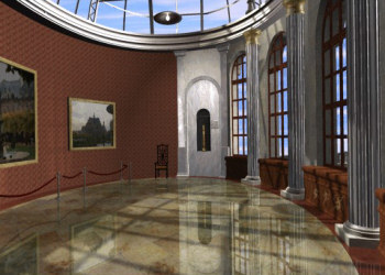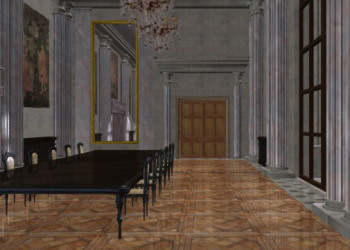 ![]() Het spel wordt gepresenteerd in slideshow beelden. Jammer genoeg kun je alleen om je heen kijken in ruimtes in het kasteel die van belang zijn voor de voortgang van het spel. Zo zijn er twee kamers waar je wel doorheen loopt, maar die je niet kunt doorzoeken. Op zich is dat geen probleem, maar soms klik je om naar rechts te kijken en dan blijkt dat je meteen achter je kijkt. Een blik op de zijwanden wordt gemakshalve overgeslagen? Er is ook een binnenplaats met een grote vijver in het midden, maar daar kun je alleen langs de rand lopen of plotselingover het water naar de andere kant. Het zou leuker zijn geweest gewoon de paden te volgen om zo het gevoel te krijgen dat je er echtbent. Maar verder is het erg leuk om in het kasteel te zijn. De beelden zijn redeljk goed van kwaliteit en het is een mooi kasteel.