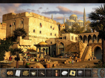 ![]() De puzzels in het spel zijn voornamelijk gebaseerd op je inventaris. Wat niet wil zeggen dat het slechts een eenvoudig oprapen en gebruiken van voorwerpen is. Hoewel Sylvie aanwijzingen geeft, is het soms nog een hele klus om uit te vinden hoe je bijvoorbeeld een vlek uit een sjaaltje haalt of ongezien een gondel gebruikt. Het spel heeft een ingebouwde hotspot-aanwijzer, maar hoe je de aangewezen voorwerpen uiteindelijk te pakken krijgt, is weer een ander verhaal. Naast de voorwerppuzzels zitten er ook een schuifpuzzel en twee tijd-puzzels in. Gelukkig krijg je wel voldoende tijd, als je eenmaal weet wat je moet doen.