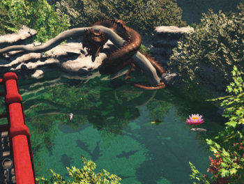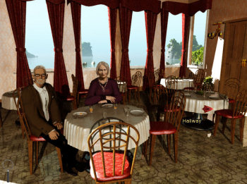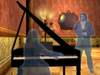 ![]() Zoals uit haar website mysterymanor.net al blijkt, is Cindy Podillo dol op het inrichten van oude Victoriaanse kamers. En ook in dit spel is dat met veel aandacht en liefde voor detail gedaan. Elke ruimte in het landhuis is een plaatje dat niet zou misstaan in een openluchtmuseum. Naast de meubels, klokken en tapijten, zie je ook overal gordijnen, kroonluchters, schilderijen, ornamenten, serviezen en natuurlijk planten en vazen met bloemen en alles pas bij het tijdperk en de sfeer van het landhuis. Een moderne kamer is blijkbaar moeilijker, want waarom staat de computer op het dressoir, in plaats van op het bureau ervoor? Maar dat ene misplaatste detail is snel vergeten als je de Japanse tuin, de kust of het bos bekijkt. Je speelt in de eerste persoon, dus Sarah krijg je nooit te zien. De figuranten echter wel en die maken een stijve, opgeplakte indruk. Ze staren star langs je heen, zonder animaties van lichaam, handen of gezicht. De geesten daarentegen lijken door hun houding en gezichtsuitdrukking meer te leven, hoewel ook die niet geanimeerd zijn. Alleen een boselfje fladdert op een vreemde manier door het doolhof. Gek genoeg doet dit gefladder afbreuk aan de stilte en geheimzinnigheid van de achtergrond, mede ook omdat het meer een getekend plakplaatje is, dan een elfje dat in een fotografisch mooi bos zou kunnen wonen.