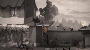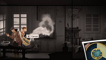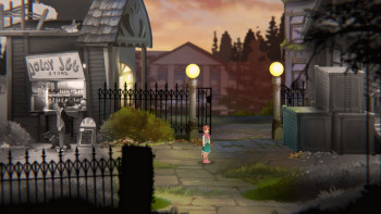![]() Bewegingen op de achtergrond zijn nauwelijks aanwezig, maar je mist ze niet. De tekeningen van het spel laten genoeg zien. Er zijn uit elkaar spattende klokken in klokkentorens, rook uit een schoorsteen, af en toe bewegende bomen, maar verder is er op de achtergrond niet veel te zien behalve passerend verkeer. Er zijn geen stemacteurs, de korte gesprekjes worden in geschreven tekst weergegeven. Wel hoor je de voetstappen van Alice en haar vader of bijvoorbeeld het geluid van een smid die zijn aambeeld bedient. De muziek is goed gekozen. Stemmige en rustgevende achtergrondmuziek, als van een piano, die niet stoort of overheersend is.