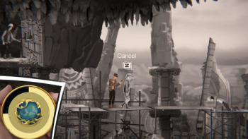 ![]() De puzzels kennen geen variatie. Het spel geeft alleen de mogelijkheid het horloge te verzetten en zo de gebeurtenissen te veranderen. Een inventaris is er alleen in het horloge zelf, waar je gevonden tandradertjes kunt bewaren om torenklokken mee te repareren. Verder zijn er geen voorwerpen te verzamelen. Er is geen verband tussen de puzzels. De ene keer moet een voetbalspel goed worden opgelost, de andere keer een schip juist worden geladen of moeten spelende jongetjes worden gemanipuleerd om een tandwieltje te vinden. Deze gebeurtenissen zeggen niets over het leven van de klokkenmaker, zijn slechts losse problemen die hij tegenkomt.