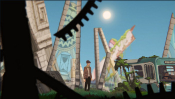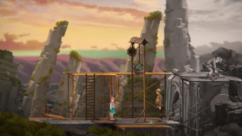 ![]() Clocker is een bijzonder spel wat de tekenkunst betreft. De tekeningen zijn zwart-wit voor de klokkenmaker met een uitzondering voor voorwerpen die te gebruiken zijn. Die zijn in kleur. Voorwerpen en figuurtjes die met het horloge zijn te manipuleren krijgen een witte contour, om dat duidelijk te maken. Alice daarentegen loopt rond in een gekleurde wereld. Die kleuren zijn helder en gedetailleerd. Bijzonder mooi zijn de overgangen naar nieuwe scènes. Voordat je op een nieuwe plek terechtkomt zie je die plek geschetst in zwarte tekeningen op een gelinieerde witte achtergrond alsof het een tekenschriftje is. Speels en mooi gedaan. Alle tekeningen in het spel zijn zeer gedetailleerd en geven veel sfeer. De figuurtjes hebben soms wat houterigs in hun bewegingen van de armen, maar dat is geen onkunde maar zo bedoeld. Mimiek op gezichtjes is er niet.