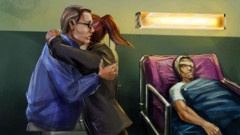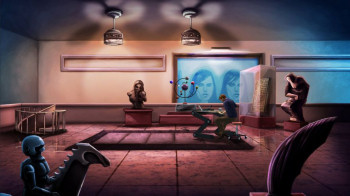 ![]() Grafisch gezien ziet het spel er verrassend goed uit. De achtergronden zijn met veel liefde voor detail gemaakt en zien er overtuigend echt uit. De getekende personen passen er over het algemeen naadloos in. Een enkele keer had ik het gevoel dat de verhoudingen niet helemaal klopten tussen met name Erica's grootte en de achtergrond. Maar iedereen ziet er meestal wel levendig uit en staat of zit in een natuurlijk pose. Erica loopt weliswaar net zo lomp als King Graham en ziet erg ongelooflijk onelegant uit als ze een deur open maakt, maar tegelijk moet ik dan natuurlijk toegeven dat ze beslist niet statisch is. Het karakter heeft een opmerkelijke veelvoud aan bewegingen, die soepel verlopen. Erica strompelt als ze gewond is, de bureaustoel veert als ze gaat zitten en hem dichterbij schuift en ze beweegt handen, armen schouders en lippen als ze in gesprek is. Het ziet er fantastisch uit. In de close-ups lijken de beelden weer meer op karakters in een strip, met donkere lijnen omrand. Ook de dialogen worden een strip-kader weergegeven. Een hele aparte keuze van vormgeving zijn ook de herinneringen, visioenen en heftige acties. Ze worden in grote opeenvolgende beelden, in een soort stripverhaalvorm gepresenteerd. Die beelden zijn minder gedetailleerd, maar dat verhoogt juist het dramatische karakter van de scène.