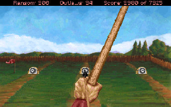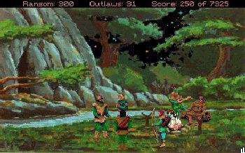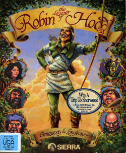 CONQUESTS OF THE LONGBOW: The Legend of Robin Hood![]() Uitgever: Sierra On-Line / 1991 Ontwerper: Sierra On-Line Platform: PC. Systeemeisen: --- DOS 3.0 tot 3.3 - 8088/8086 processor - 640 KB RAM - 3.5" of 5.25" floppy disk drive - EGA, MCGA, VGA videokaart - Adlib, Sound Blaster of gelijkwaardige geluidskaart. Categorie: Historische fantasie, 12de eeuw, Sherwood forest, actie-scenes, 2D en 2.5D geïllustreerd realisme, de persoon, point & click. Beschrijving: Het is het jaar 1193 en de Derde Kruistocht in het Heilige Land is net ten einde. Richard Leeuwenhart keert terug naar Engeland en wordt onderweg overvallen en ontvoerd door de soldaten van de Oostenrijkse hertog Leopold. De hertog eist een grote som losgeld, maar Richards broer John vind het wel prettig dat hij door kan regeren zolang zijn broer weg is en betaalt dus niet. Intussen wordt het leven van Robin Hood en zijn mannen in Sherwood Forest er niet makkelijker op door de acties van de sheriff van Nottingham. Maar Robin zou Robin niet zijn als hij niet alles op alles zou zetten om de mooie Lady Marian te veroveren en tegelijk op te komen voor de armen en misdeelden van de stad. Bovendien ontdekt hij ook nog het complot om de rechtmatige koning Richard van zijn troon te stoten en besluit hij actie te ondernemen. Het spel kent vier verschillende eindes, afhankelijk van je acties.
