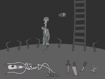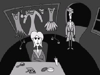 CUBERT BADBONE P.I.![]() Uitgever: Deirdra Kiai / 2002 Ontwerper: Deirdra Kiai Platform: PC. Systeemeisen: --- Windows Categorie: Science fiction fantasie, detective, aliens, 2D zwartwit cartoon beelden, 3de persoon, point & click. Walkthrough: klik hier voor Marjo's Nederlandstalige walkthrough. Beschrijving en review: Je speelt Cubert Badbone, de enige privé detective op Ekrat Eiland. Hij is niet echt dol op mensen, maar als hij op een dag ondekt dat álle mensen op het eiland verdwenen zijn, gaat hij toch maar eens op onderzoek. Mensen zijn namelijk best goed voor de toeristenindustrie. Het spel is uitgevoerd in zwart-wit, iets dat heel goed past bij de tekeningen en het verhaal. De karakters die je tegenkomt zijn humoristisch gek. De achtergrondmuziek is prima, veel beter dan verwacht bij een gratis kort spel. De puzzels zijn gebaseerd op het vinden en combineren van voorwerpen. En vooral het bekijken ervan kan van belang zijn.