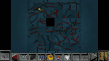![]() Het zijn niet alleen logische inventaris- en dialoogpuzzels, waarmee je te maken krijgt. Er moeten ook codes worden ontcijferd, elektriciteitscircuits worden hersteld en er is een doolhof waar je een rat door moet sturen om een sleutel te vinden. Een gevarieerd geheel aan puzzels, die veel plezier geven en niet te makkelijk of te moeilijk zijn. Soms geeft het spel, als je iets niet weet op te lossen, aanwijzingen hoe je de puzzel aan moet pakken. De oplossing wordt dan niet gegeven, hooguit een tip om verder te komen. Bij de elektrische circuitpuzzel krijg je na een paar pogingen de mogelijkheid een eenvoudiger versie te kiezen. Tijd speelt bij deze elektriciteitspuzzel een belangrijke rol en dat is ook zo als je monsters dreigt te ontmoeten. Je weet dat ze eraan komen door de rode randen en bloedvlekken op het scherm. Je kunt door die geesten en monsters regelmatig 'doodgaan' in het spel, maar kunt het meteen daarna voortzetten, omdat het spel een auto-save heeft. Soms zul je dood móéten gaan om uit te vinden hoe de puzzel kan worden opgelost. De eindpuzzel bijvoorbeeld, is niet te doen zonder eerst te sterven. Het kost tijd uit te vinden wat je moet doen en omdat dat nogal veel is, ben je voor je alles ontdekt hebt al een paar keer gestorven. Het zou in zulke gevallen logischer zijn de hoofdpersoon niet te laten sterven, maar verlamd neer te laten vallen of zoiets dergelijks. Over het algemeen zijn de puzzels goed te doen en zitten ze logisch in elkaar.