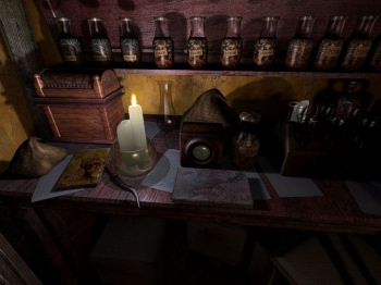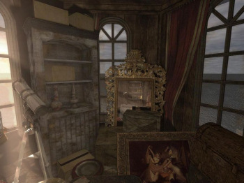 ![]() De puzzels in dit spel bestaan voornamelijk uit het verzamelen van hints, die je in gevonden documenten moet onderstrepen. Ze verschijnen dan in een speciaal "denk-schermpje" in je inventaris, waar je ze kunt bekijken en combineren. Er is dan ook heel veel leeswerk. Andere puzzels zijn standaard-adventure, zoals het zoeken van sleutels en het openen van deuren. De grafische beelden zijn donker gehouden en als Howard in een nachtmerrie zit, wazig. Dit alles om de sfeer van een horror vast te houden. Je loopt van beeld naar beeld en je kunt 360 graden rond kijken op de plek waar je stilstaat. Dit is ook wel nodig, want er liggen de nodige hints op de vloer.