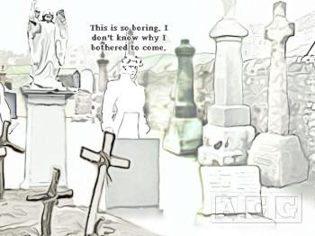 ![]() De beelden zijn prachtig, al zal het voor de meeste adventurespelers even wennen zijn. Dit spel is helemaal opgebouwd uit handgeschilderde achtergronden in een soort verstilde waterverftechniek met (in dit spel) pastelkleuren. Ze zijn gebaseerd op foto's en schilderijen. Zelfs het cafeetje dat van Gogh schilderde is op een mooie manier verwerkt. In de achtergronden zie je geanimeerde karakters rondlopen, die slechts met een eenvoudigepotloodcontour zijn aangegeven. Het gaat immers niet erom hoe zij eruitzien, maar hoe ze denken en wat ze doen. Er zijn geen gesproken stemmen in dit spel. En daar is bewust voor gekozen. Stemmen zouden maar afleiden van het verhaal en van de prachtige muziek, die de scenes onderstreept. De muziek is klassiek, zeer gevarieerd en passend bij de tijd waarin het verhaal zich afspeelt.