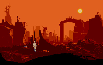 FUTURE WARS: Adventures in Time![]() Uitgever: Palace Software / 1990 Ontwerper: Delphine Software Platform: PC. Systeemeisen: --- MS-DOS 2.1 - Processor: Intel 8088/8086 - 512 KB RAM - CGA, MCGA, VGA videokaart - Geluidskaart: Adlib/PC Speaker - 3.5" of 5.25" floppy disk drive. Categorie: Science fiction, tijdreizen, wereld redden, humor, 2D en 2.5D getekend pixelbeeld, 3de persoon, point & click. Beschrijving: Anno 1989 is een eenvoudige glazenwasser aan het werk, aan de buitenkant van een wolkenkrabber. Deze onwaarschijnlijke held is van plan een grap uit te halen met zijn boze baas en ontdekt een geheime doorgang die naar een tijdmachine leidt, samen met mysterieuze buitenaardse documenten. Door het apparaat te bedienen, wordt de glazenwasser naar het jaar 1304 getransporteerd, waar hij een schijnbaar gewone taak krijgt om een dame in gevaar te redden. Hij komt echter al snel achter een veel ernstiger dreiging van een wereldwijde buitenaardse invasie. De held moet naar de verre toekomst van de 44e eeuw reizen en uiteindelijk naar het verre verleden van het Krijt om de plannen van de aliens te dwarsbomen.