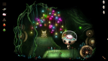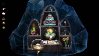 GROWBOT![]() Uitgever: Application Systems Heidelberg / 2021 Ontwerper: Wabisabi Play Platform: PC, Mac, iOS. Systeemeisen: --- Windows 7 SP1 en hoger - Processor: 1.2 GHz - 4 GB RAM - Grafische kaart: 1024MB VRAM - DirectX 11 - 5 GB beschikbare opslagruimte. --- MAC OS X version El Capitan 10.11+ of later - Processor: 1.2 GHz - 4 GB RAM - Grafische kaart: 1024MB VRAM - 5 GB beschikbare opslagruimte. --- LINUX Ubuntu 16.04+ - Processor: 1.2 GHz - 4 GB RAM - Grafische kaart: 1024MB VRAM, OpenGL 3.2 - 5 GB beschikbare opslagruimte. Categorie: Science fiction fantasie, wezentjes op ruimteschip, onderzoek, minigames, handgetekende 2D beelden, 3de persoon, point & click. Walkthrough: klik hier voor Yvonnes Nederlandstalige walkthrough. Beschrijving en review door Yvonne: Growbot is een charmant, handgetekend en origineel adventurespel, dat zich afspeelt in een fantasiewereld met science fictiontrekjes. De hoofdpersoon heet Nara. Zij is een robotje met een klein lichaam en een groot hoofd met een doorzichtige bovenkant. Nara's wereld is een ruitvormige, driedimensionale kristal die aan 6 kanten beschermd wordt door ruitvormige kristallen ruimtestations. Nara verlaat haar asteroïde Kew om op het ruimtestation Ventral een training te krijgen als 'captain' onder de growbots luitenant Kino en captain Art. Ze loopt meteen tegen verschillende problemen op. Een ervan is haar leider Kino te vinden, die zoek is. Verder moet robotje Crissy tot de orde geroepen worden, die kristallen laat groeien in plaats van bloemen. Die kristallen maken essentiële machines kapot en zitten de growbots flink in de weg of sluiten ze in. Andere figuurtjes die een rol spelen, zijn de Starbelly's, de beveiligingsbeambte beertje Ted Wee en de hoofdtuinier. ![]() ![]() Growbot is geen role playing game, waarin je al spelend de capaciteiten van de hoofdpersoon vergroot, maar Nara ontwikkelt zich wél gedurende het spel. In haar doorzichtige hoofd kan Nara een belangrijk voorwerp meenemen. In het begin is dat een soort hamsterachtig wezentje, de Brainapilla, dat raad geeft over voorwerpen en problemen die Nara tegenkomt. Als Nara genoeg ervaring heeft opgedaan, groeit er een bloem in haar hoofd en is zij een volleerde Growbot geworden. Het spel begint in het ruimtestation, waar je voorwerpen moet vinden om verder te komen. Het verandert al snel in een spel met aan elkaar geregen minigames. Een groot deel van het spel gaat de speler op zoek naar bloemen die een muzieknoot laten horen. Met die losse noten zijn klanken te maken in een 'bloemschikker'. Deuren en andere doorgangen naar een volgende ruimte zijn afgesloten door ruitvormige schilden, die pas te openen zijn als je de juiste muzieksleutel daarvoor vindt. Die sleutels bestaan uit zes losse klanken die je in de bloemschikker na moet spelen door op de juiste bloem te klikken. Bovenaan is een knop om de tonen nog eens te horen. Om het makkelijker te maken kun je op de knop listendrukken en lees je de namen van de bloemen die je op de juiste plek moet zetten. Een handig hulpmiddel voor mensen die minder goed horen. ![]() ![]() Op de zelfde manier kun je ook een bescherm- en aanvalssleutel maken. Niet de wezentjes worden aangevallen maar bijvoorbeeld een kristalrots die de weg verspert. Er komt geen agressie voor in dit spel. De enige kwaadaardige figuurtjes zijn de ghouls in een doolhof die Kino gevangen houden. Als je tegen hen aanloopt blijken het bommetjes te zijn. Ze doden je niet, maar blazen je weg. Je begint dan opnieuw op een plek in de buurt. Nara probeert de taken van Kino en captain Art uit te voeren om zo haar wereld te beschermen. Mooi is het repareren van de koraalmachine. Nara repareert hem en zuivert zo het water en brengt de kleuren terug naar het koraal. In dit wereldje, als een sprookje voor volwassenen, zijn heel veel gevariëerde puzzels op te lossen. Behalve de inventarispuzzels en het maken van de muzieksleutels krijg je te maken met minigames zoals schuifspelletjes en doolhoven, die al dan niet te verdraaien zijn. Je moet radertjes op de juiste plaats zetten en bijvoorbeeld sluizen open zetten om het water de goede kant op te laten stromen. Sommige van dit soort puzzels zijn bekend van andere spelen, maar in Growbot wordt er een creatieve en oorspronkelijke draai aan gegeven. ![]() ![]() De minigames zijn geweldig, maar niet makkelijk. Door de moeilijkheidsgraad is het spel vooral geschikt voor redelijk gevorderde spelers, hoewel er ook erg makkelijke problemen in zitten. Het lijkt dat de puzzels moeilijker worden in de loop van het spel. Er is geen skip- of helpfunctie en de uitleg bij de puzzels is niet altijd zo duidelijk dat je weet wat je precies doen moet. Als de puzzel is opgelost, snap je vaak de uitleg pas. Met een skip-functie of hintfunctie zou het spel meer spelers kunnen trekken, maar met wat doorzettingsvermogen en nadenken lukt het wel het spel uit te spelen en het verhaal te begrijpen. Nara vindt aan het eind van het spel niet alleen Kino terug, maar ontmoet ook Crissy die zich niet bewust was van haar verwoestende gedrag. Het boek dat Nara bij zich heeft, geeft de achtergrond van de asteroïde Kew. De geschiedenis bijvoorbeeld, de flora en fauna, het ontwerp van de Growbots enzovoort. Je hebt dat boek niet nodig om het spel uit te spelen, maar het verduidelijkt veel van het verhaal en dan komen ook minder geoefende spelers er wel uit. Dat verhaal is de moeite waard. ![]() ![]() De wereld ziet er lieflijk uit met al die bloemen die je ziet in gras of bosjes. Nara komt verschillende niet-menselijke figuurtjes tegen, waarvan de Starbelly, de belangrijkste is. Hij heeft een doorzichtige buik die een sterrenhemel laat zien. Er zijn waterdraakjes, vreedzame bijen, zeepaardachtige luchtwezentjes en veel meer wezentjes die niet bestaan in onze wereld. De figuurtjes zijn speels getekend en prachtig om te zien. Ze bewegen soepel. Vooral de piepkleine waterdraakje, die door een waterstelsel zwemmen, zijn een lust voor het oog met hun elegante z