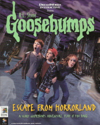 GOOSEBUMPS: Escape from Horror Land![]() Uitgever: DreamWorks Interactive / 1996 Ontwerper: DreamWorks Interactive Platform: PC. Systeemeisen: --- Windows 95 - Intel Pentium processor - 8 MB RAM - Videokaart met 256 kleuren, 640x480 resolutie en en 1 MB geheugen - 2x CD-ROM drive. Categorie: Horror, bezeten pretpark, zoektocht, ontsnappen, geïllustreerd realisme, live action, panoramisch, 1ste persoon, point & click. Beschrijving: Goosebumps: Escape from Horrorland is het interactieve vervolg op de kinderhorrorroman van R.L. Stine, One Day at Horrorland. Jij en Lizzy, haar broer Luke en zijn vriend Clay zitten opnieuw vast in Horrorland, een sinister, eng 'themapark'. Wanneer Luke en Clay worden gevangengenomen, moeten jij en Lizzy ze vinden en proberen levend uit het park te ontsnappen. Je moet het echter opnemen tegen een mummie, een weerwolf, Dracula en nog veel meer monsters eer het lukt omte ontsnappen. ![]() ![]() Grotere plaatjes bekijken? Ga naar de screenshots. |