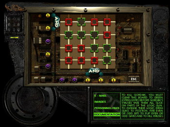 GORD@K![]() Uitgever: H+a Entertainment / 1997 Ontwerper: Hoffman and Associates Platform: PC, Mac. Systeemeisen: --- MS DOS 5.0 / Windows 3.1/95 - Processor: Intel Pentium - 16 MB RAM - Videokaart 640x480 256 kleuren - Geluidskaart: 8 bit soundblaster compatible - 2x CD-ROM drive. --- MAC System 7.5 - Quadra CPU (Power Mac aanbevolen) - 16 MB RAM - Videokaart: 640x480 256 kleuren (duizende aanbevolen) - 2x CD ROM. Categorie: Science fiction, surrealistisch, computervirus, interactieve film, getekend beeld, 1ste persoon, point & click. Beschrijving: Je speelt de rol van een cyberagent en wordt de cyberspace in gestuurd om Gord@k, een kwaadaardig computervirus, te stoppen. Verken surrealistische VR-landschappen, verzamel aanwijzingen en vind items die je kunt gebruiken om Gord@k te vernietigen. Gord@k wacht op je. Het weet dat je bent gekomen. Maar het maakt zich geen zorgen. Anderen zijn je voorgegaan. Ze zijn er niet in geslaagd het te vernietigen... Misschien begrepen ze niet dat de wereld van Gord@k aan de rand van een digitale duisternis bestaat die zo diep en ondoordringbaar is dat overleven misschien geen optie is. De regels lijken eenvoudig genoeg. Vind het, voordat het jou vindt. Maar de tijd dringt. Het spel bevat geen ondertiteling. Je kunt in dit spel zelf je spel opslaan, maar er is slechts 1 saveslot. Verlies je het eindspel tegen Gord@k, dan wordt automatisch ook deze save weggegooid. Er zit dan niets anders op dan helemaal opnieuw te beginnen! Om het nog erger te maken, begint Gord@k al te spelen, terwijl jij de spelregels nog leest. ![]() ![]() Grotere plaatjes bekijken? Ga naar de screenshots. |
