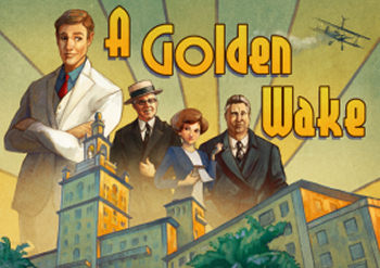 A GOLDEN WAKE![]() Uitgever: Wadjet Eye Games / 2014 Ontwerper: Grundislav Games Platform: PC, Mac, Linux. Systeemeisen: --- Windows ME of hoger - Pentium of hogere processor - Grafische kaart minimaal 640x400, 32-bit kleur, 700 Mhz systeem minumum - DirectX 5.2 - DirectX-compatible geluidskaart - 350 MB HD ruimte. Categorie: Historisch drama, makelaars, mafia, Miami 1920, retrostijl 2D en 2.5D getekende beelden, minigames, 3de persoon, point & click. Beschrijving en review: Dit retro-adventure is het eerste commerciële spel van Grundislav Games, die menigeen wellicht zal kennen van de gratis Ben Jordan spellen. The Golden Wake speelt zich af in de "Roaring Twenties", de wereld van glitter en glamour in de jaren twintig van de vorige eeuw. Het spel is gebaseerd op werkelijke gebeurtenissen en historische figuren, maar blijft natuurlijk een verzonnen verhaal. Makelaar Alfie Banks wordt uit de zaak van zijn overleden vader gewerkt en besluit naar Miami te gaan, waar de onroerend goed zaken flink in opkomst zijn. Hij vindt een baan bij Coral Globes, het belangrijkste makelaarskantoor in de stad. Dat hier toevallig ook nog het mooiste meisje van de stad werkt, is natuurlijk bijzaak. Alfie vervult met succes de taken die hem opgedragen worden. Maar na een aantal jaren wil Alfie niet meer de loopjongen van baas Merrick zijn. Hij heeft ambities en ziet een kans om hogerop te komen in dienst van mafiabaas Fatty Walsh. Maar snel rijk worden heeft ook zo zijn prijs.