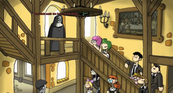 ![]() De meeste puzzels zijn gebaseerd op je inventaris. Het juiste voorwerp op de juiste plaats gebruiken. Er zitten ook enkele minigames in, zoals een soort eenvoudige sudoku en er is zelfs een doolhof. Ze zijn echter niet moeilijk en vaak zelfs met een druk op de knop over te slaan. De spelbediening is dan ook heel eenvoudig gehouden. Je cursor ziet eruit als een konijn en als je over een voorwerp of persoon gaat, kun je aan beide oren zien welke actie mogelijk is, zoals praten of pakken/gebruiken. Je kunt dus niet zomaar elk voorwerp op alles gebruiken, wat voor onervaren adventurespelers natuurlijk heel prettig is. Je ziet meteen of iets niet mogelijk is. Aan de andere kant zorgt dat ook ervoor dat je niet vanalles gaat combineren om te kijken welke reactie je daarop krijgt en dat is voor de meer inventieve speler wel jammer. De onderwerpen bij de dialogen worden met iconen aangegeven. Ga je er met je cursor overheen, dan verschijnt een korte samenvatting van het onderwerp. Heb je geen zin om alles te horen, dan kun je de conversaties doorklikken. Dat zou overigens wel jammer zijn.
